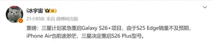 博主@i冰宇宙 日前爆料称易宝配资,由于三星S25 Galaxy Edge销量不及预期,加上iPhone Air前途渺茫,三星决定重启S26+型号。